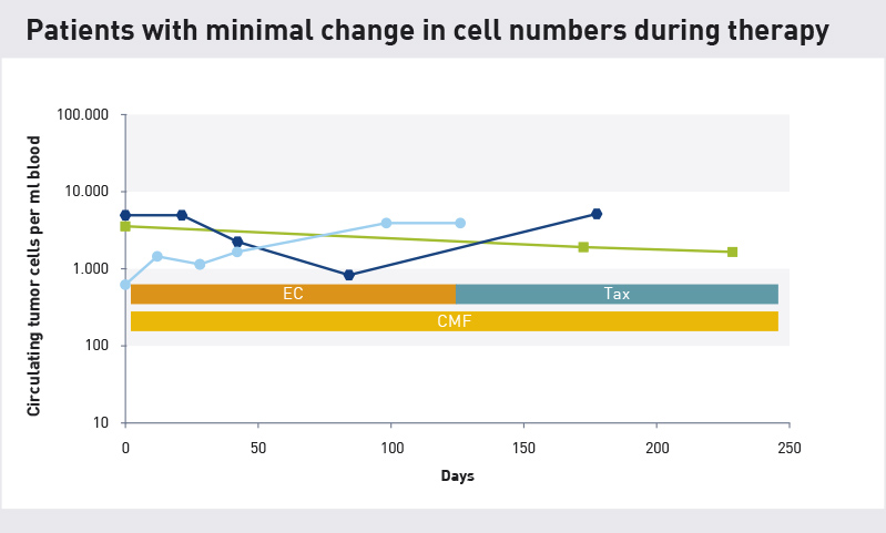 Krążące komórki nowotworowe wydają się reagować na chemioterapię tylko w ograniczonym zakresie. Mimo to wydają się wykazywać jedynie ograniczony trend wzrostowy. Ten trend zwykle wskazuje na pozytywny przyszły wynik leczenia.